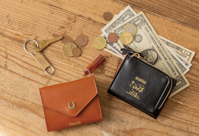 L字ファスナーで使いやすい札入れ&パカッと開くコイン入れ